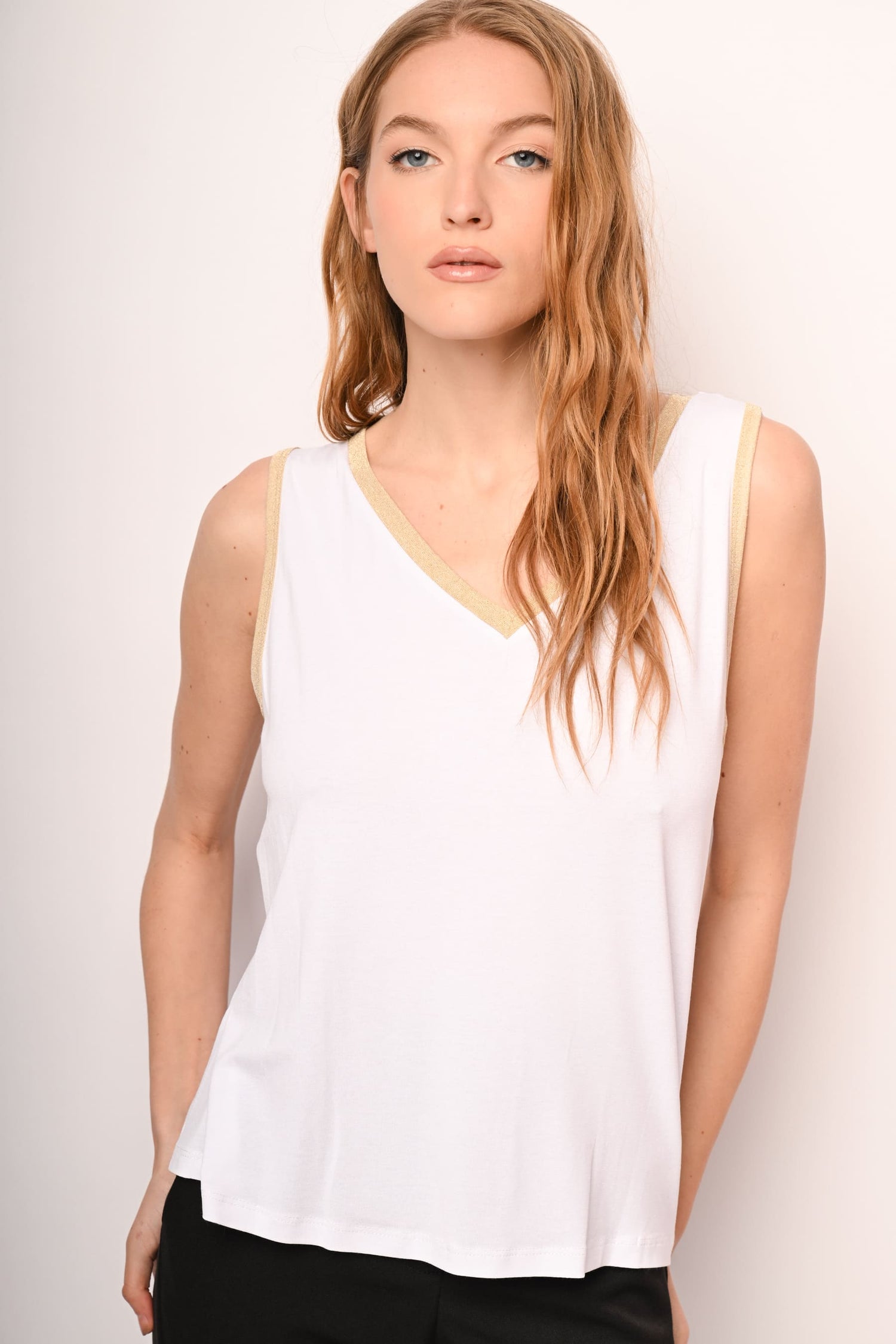 Canotta con bordo lurex oro SKU T1463T39T18BI-25-AI25 BIANCO 95%VI 5%EA