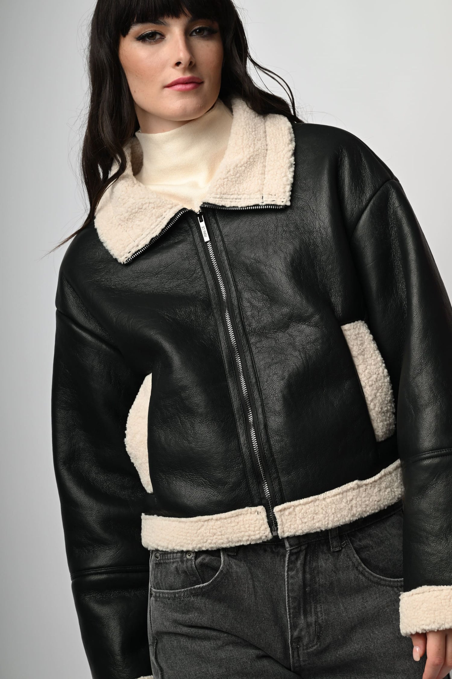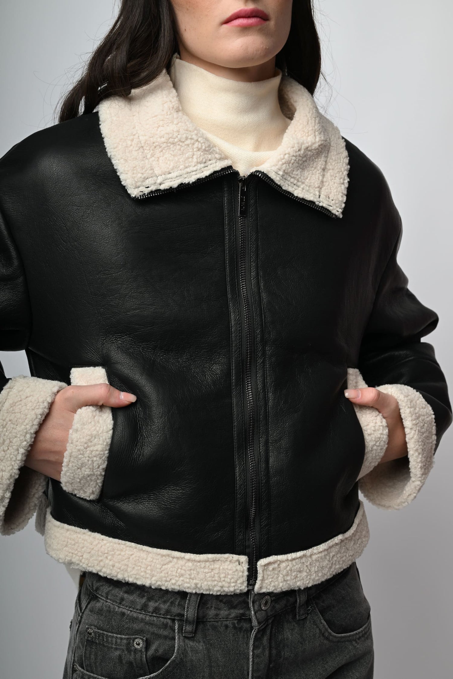 Faux leather and shearling jacket SKU KF13088NE-24-AI24 BLACK 100% polyester