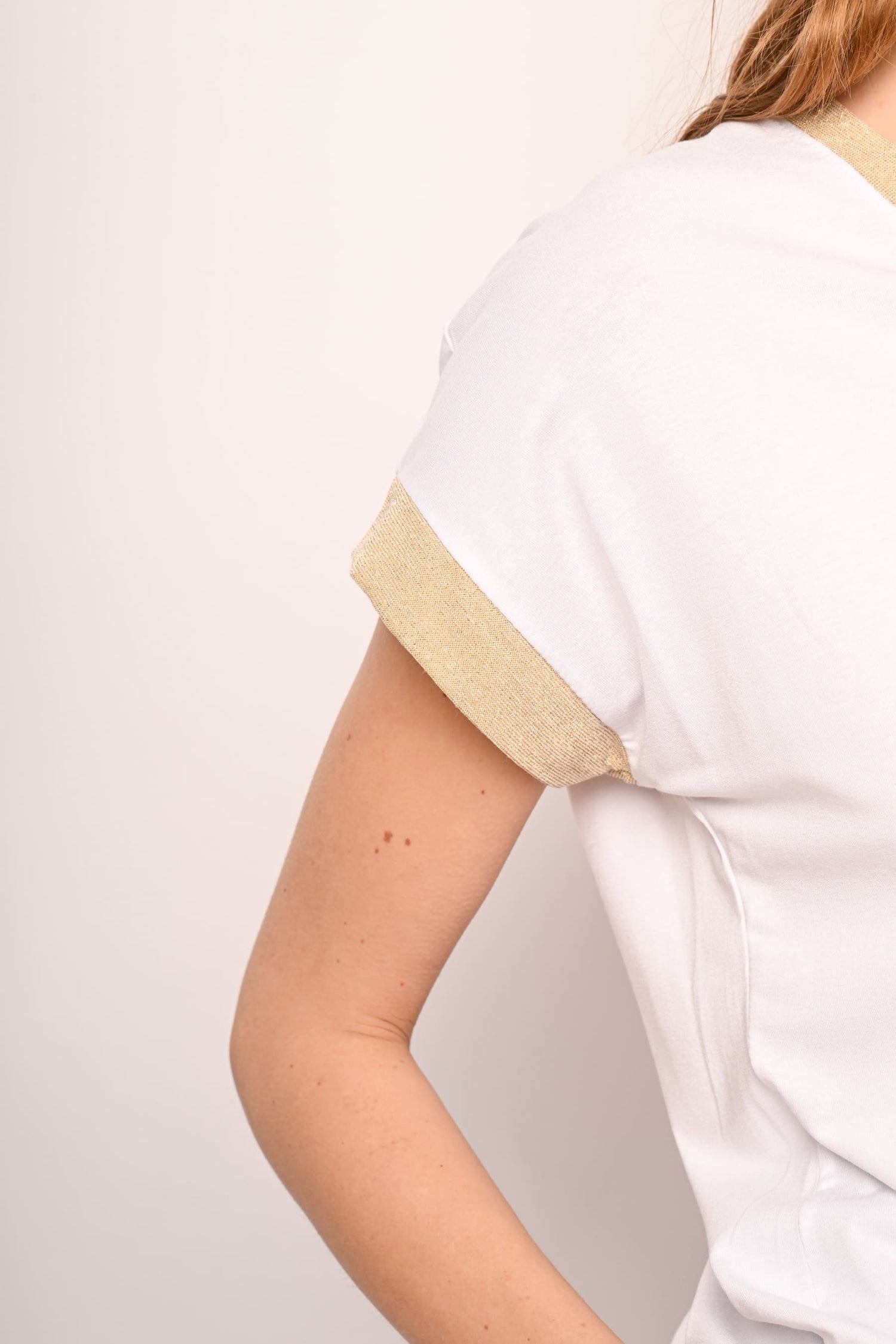Maglia con bordo lurex oro SKU M6935T39T18BI-25-AI25 BIANCO 95%VI 5%EA