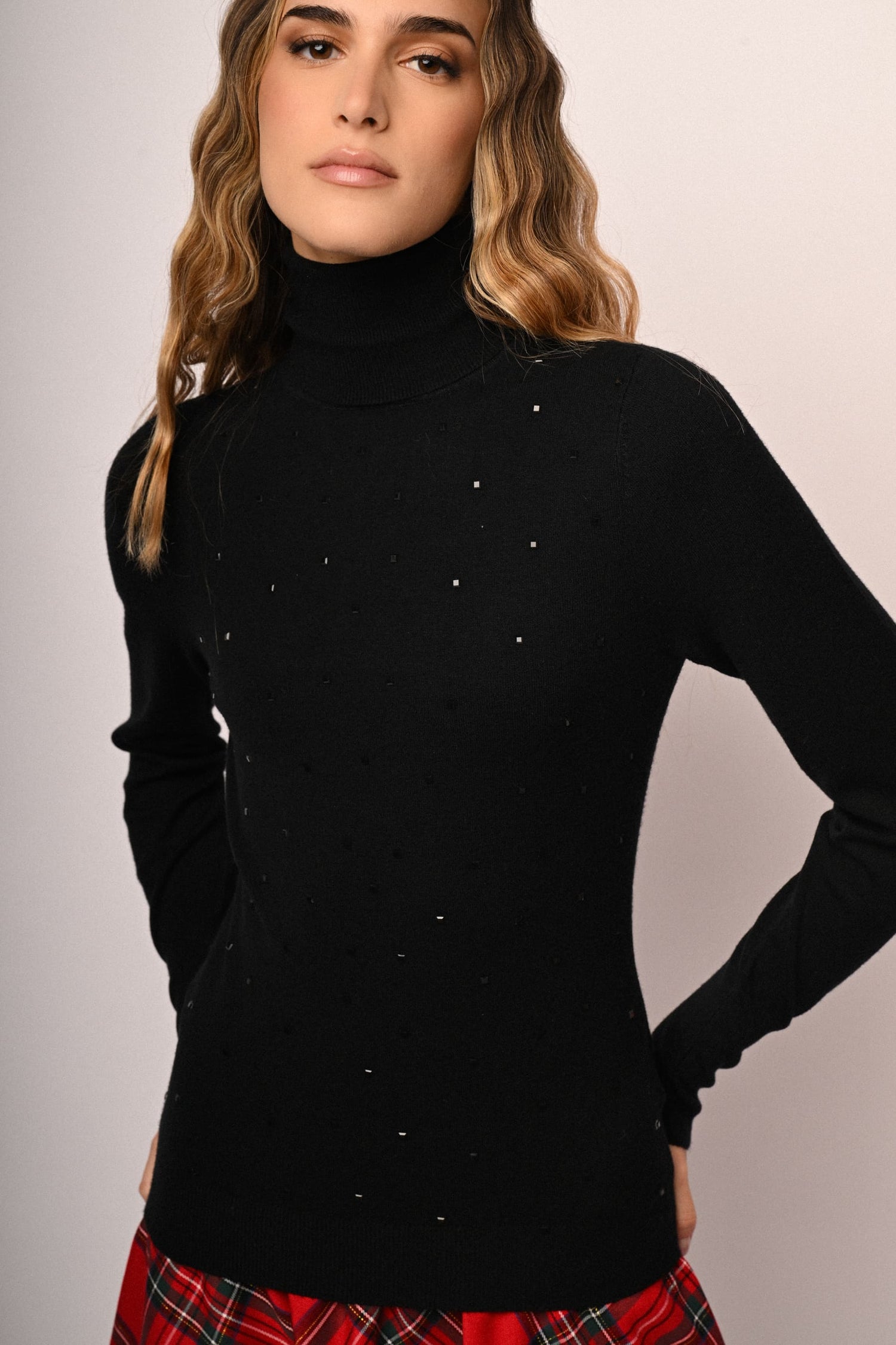 Maglia dolcevita con strass