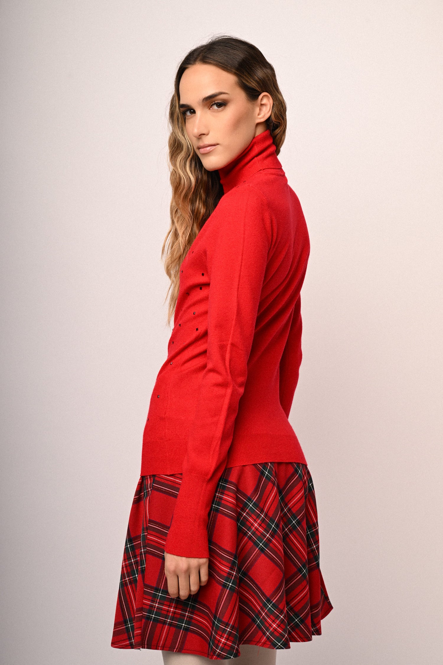 Maglia dolcevita con strass SKU VG25240RO-25-AI25 ROSSO