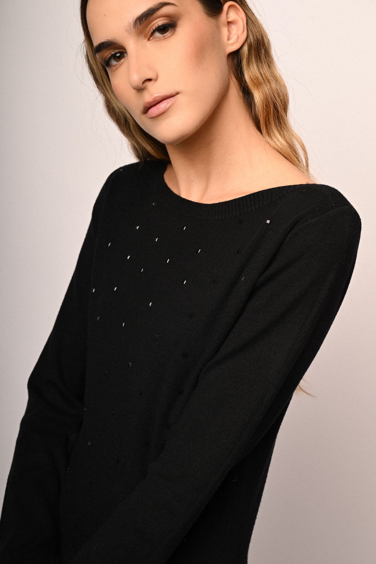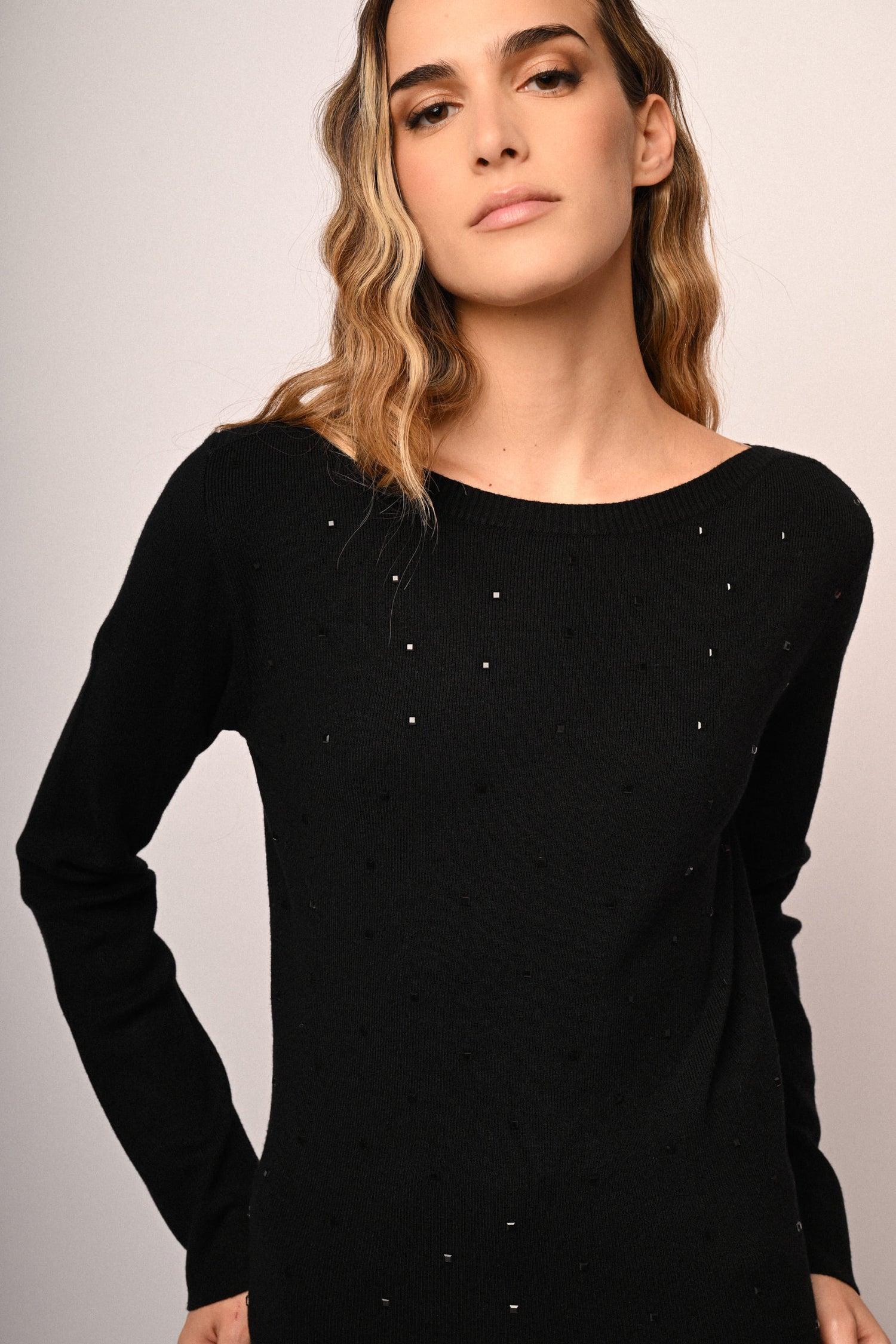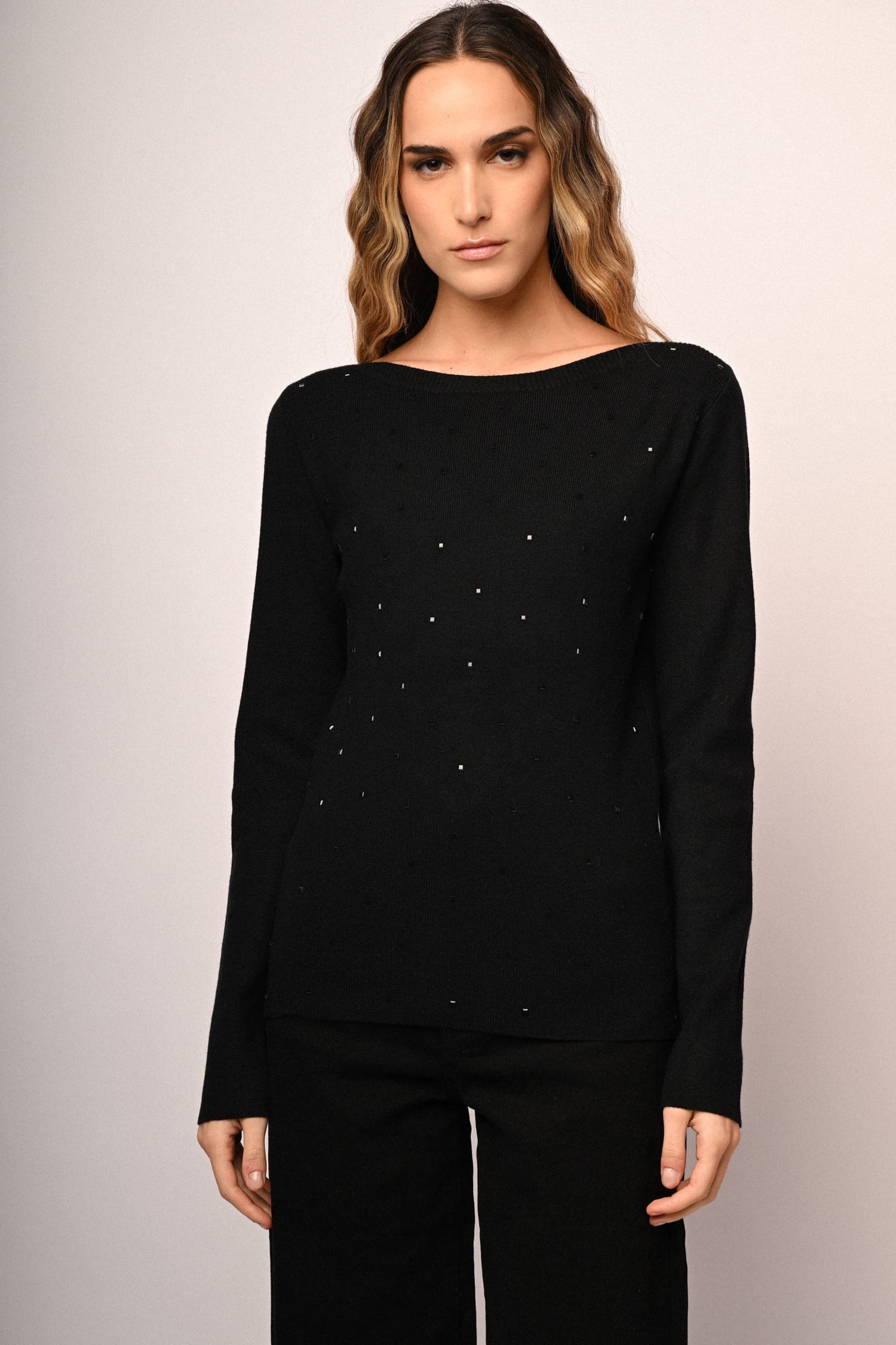 Maglia shiffer con strass SKU VG25242NE-25-AI25 NERO