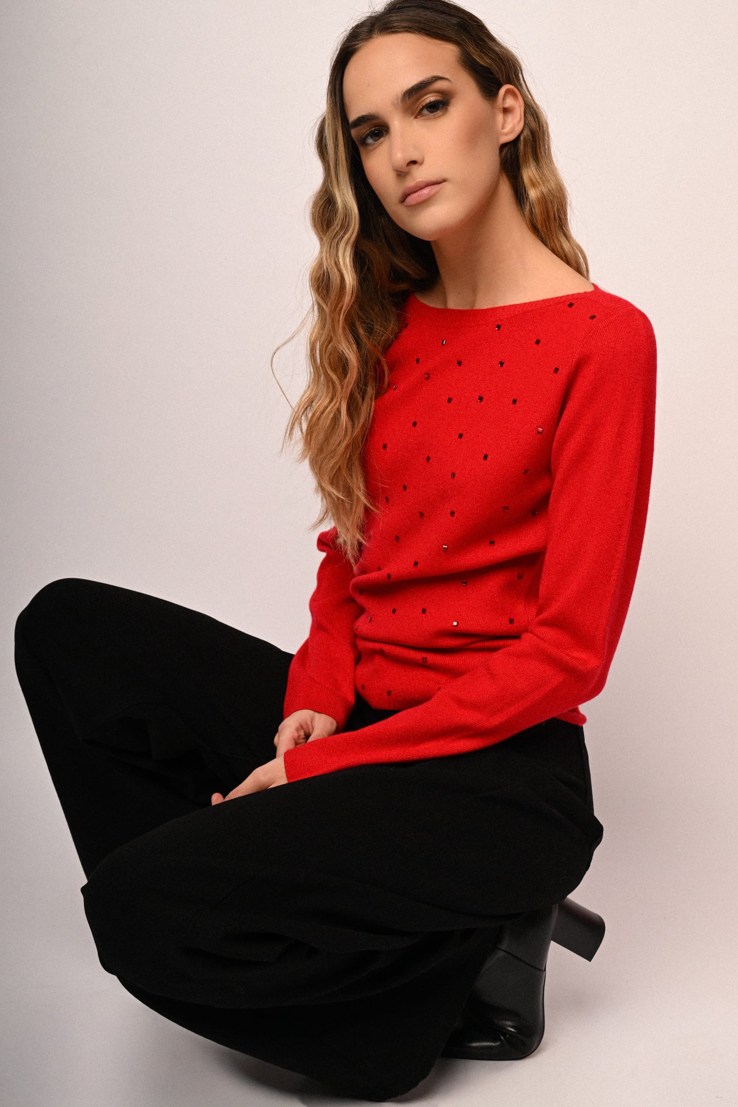 Maglia shiffer con strass SKU VG25242RO-25-AI25 ROSSO